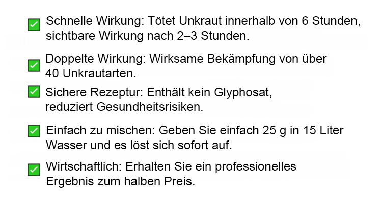Tötet alle Unkräuter innerhalb von 30 Minuten ab
