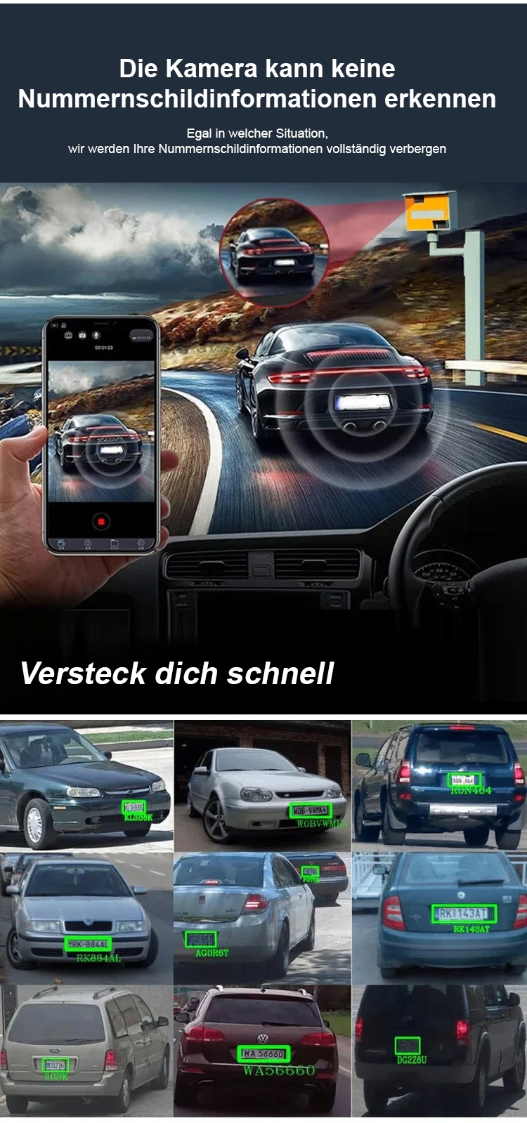 Drücken Sie die Taste und das Autokennzeichen wird verdeckt