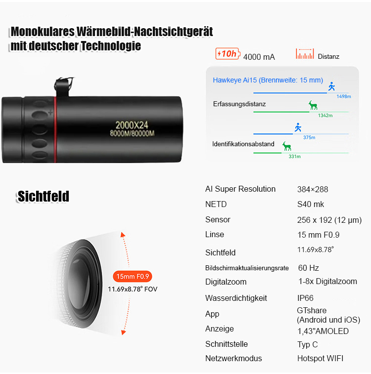 Entwickelt vom Deutschen Institut für Optische Technologien, kann es bis zu 300-fach vergrößern und alle Wärmequellen innerhalb von 1500 Metern erfassen!